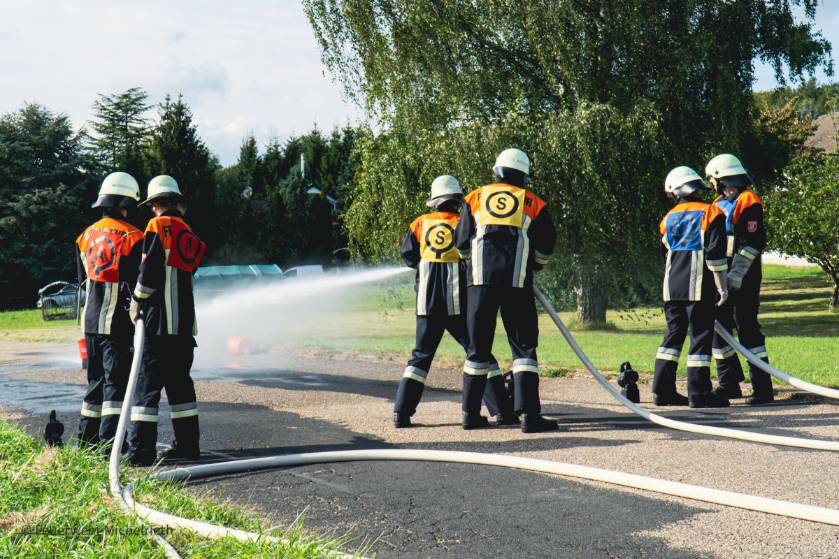 Grundaufgabe der Prüfung war der Löschangriff mit Wasserentnahme aus einer Zisterne, aber selbstverständlich gehört auch ein fundiertes Wissen über das Fahrzeug, Erste-Hilfe, Gefahrstoffe und „Knöten und Stiche“ mit zur Grundvoraussetzung.